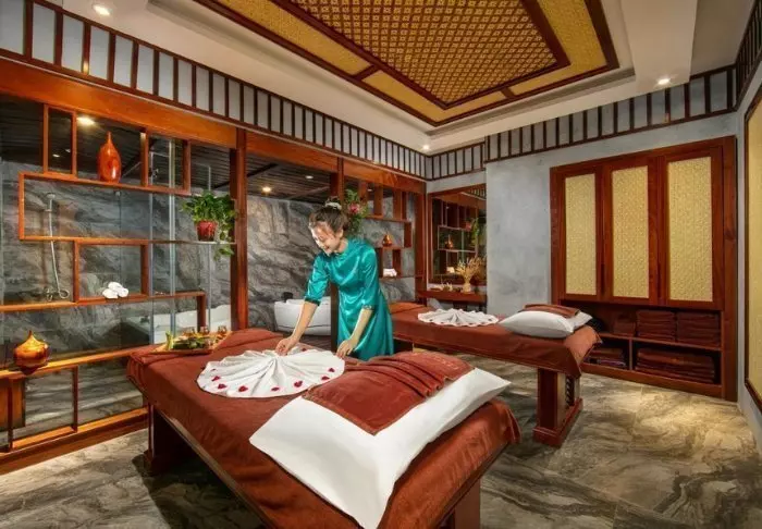 Auringossa vietetyn päivän jälkeen voit hemmotella itseäsi rentouttavalla hoidolla resortin spa-osastossa, joka on jaettu pieniin erillisiin paviljonkeihin.