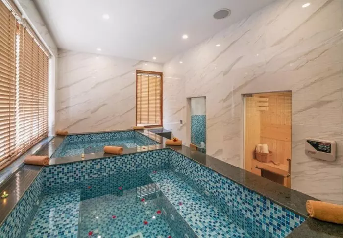 Resort tarjoaa paljon muitakin mahdollisuuksia rentoutumiseen. Voit esimerkiksi loikoilla aurinkotuolilla viihtyisällä uima-altaalla. Altaassa on kolme eri syvyyttä, joten se sopii erinomaisesti sekä lapsille että aikuisille. Tai mikset rentoutuisi porealtaassa ja nauttisi kauniista vuoristomaisemista? Voit myös varata rentouttavan jalkahieronnan tai kokovartalohieronnan resortin spasta, jonka hoidoissa käytetään rauhoittavia eteerisiä öljyjä ja omalle ihotyypillesi sopivia voiteita.