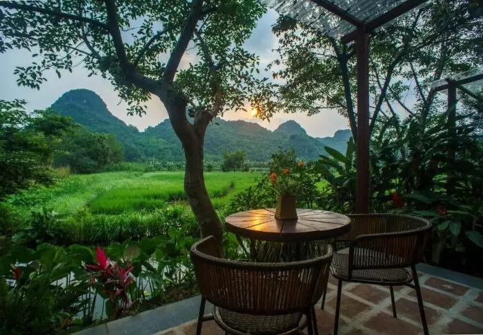 Tam Coc Rice Fields Resort on rauhallinen lomakeskus, joka sijaitsee Hanoin eteläpuolella kauniilla paikalla jylhien karstivuorten ympäröimien riisipeltojen keskellä.