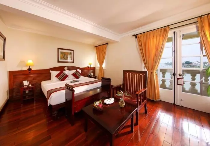 River View -huoneet sijaitsevat päärakennuksen ensimmäisessä kerroksessa ja niistä avautuu upea näkymä Mekong-joelle sekä läheisille plantaaseille. Sisustus mukailee Garden View -huoneiden tyyliä, ja täällä käytössäsi on oma parveke loungekalusteilla. Voit rentoutua ja seurata jokielämää, kun veneet lipuvat ohitse.