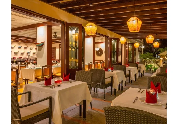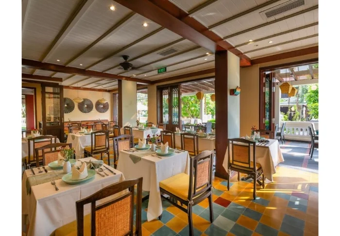 Hotellin ravintolassa on sekä sisä- että ulkoterassi, joissa voi nauttia kansainvälisiä ja vietnamilaisia suosikkiannoksia rauhallisessa ympäristössä.