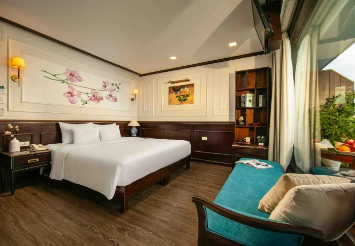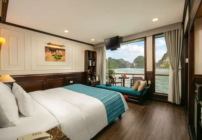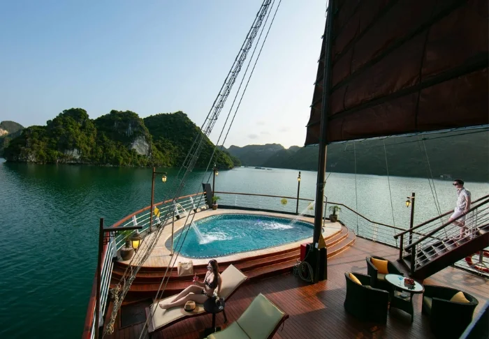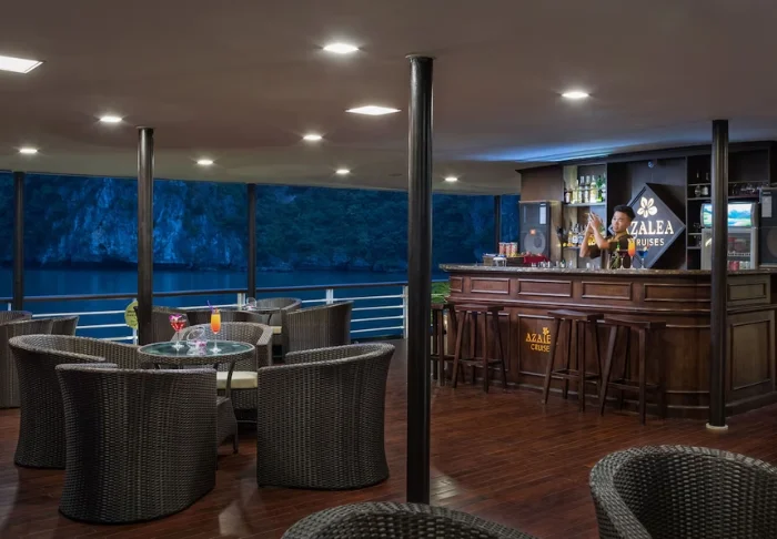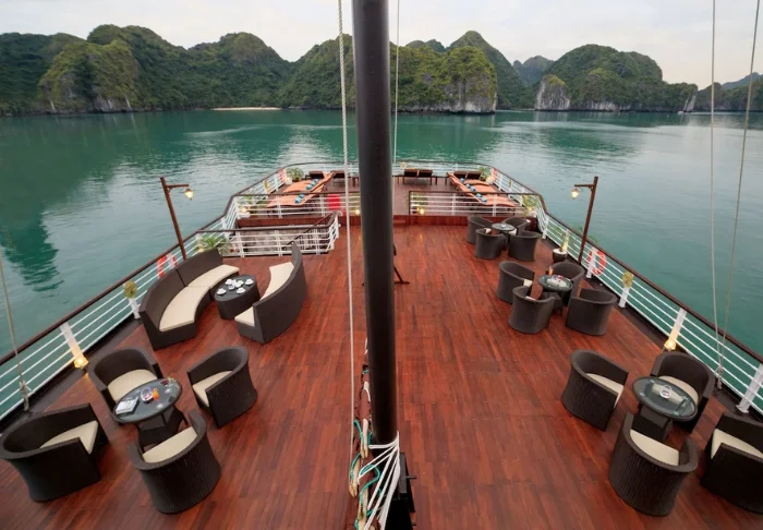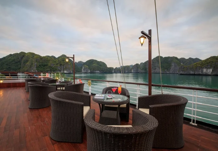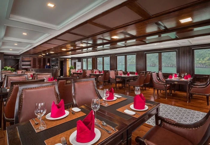Laivalla on luonnollisesti myös ravintola, jossa tarjotaan vietnamilaisia erikoisuuksia ja kansainvälisiä annoksia. Ateriat nautitaan rauhallisessa ympäristössä.