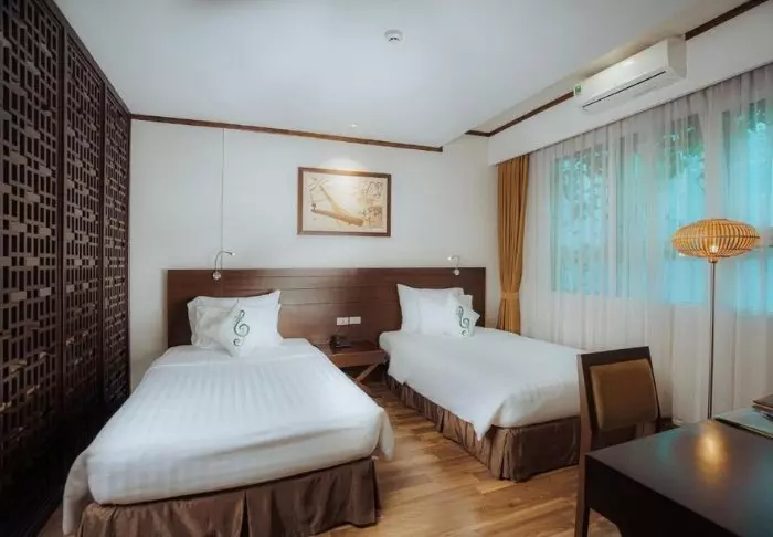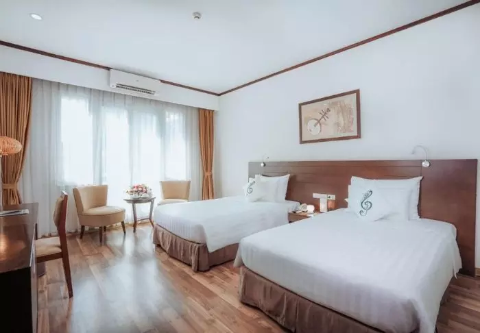 Majoitut lähtökohtaisesti Superior-huoneessa. Huoneet on sisustettu vietnamilaiseen tyyliin tummilla puukalusteilla, jotka luovat lämmintä ja viihtyisää tunnelmaa. Huoneissa on nykyaikaiset mukavuudet, kuten ilmastointi, WiFi, minibaari, kahvi- ja teetarvikkeet, tallelokero ja taulutelevisio, joten täällä on kaikki tarvittava mukavaan oleskeluun. Kylpyhuoneesta löytyvät suihku, kylpytakit, hiustenkuivaaja ja kylpytuotteita.