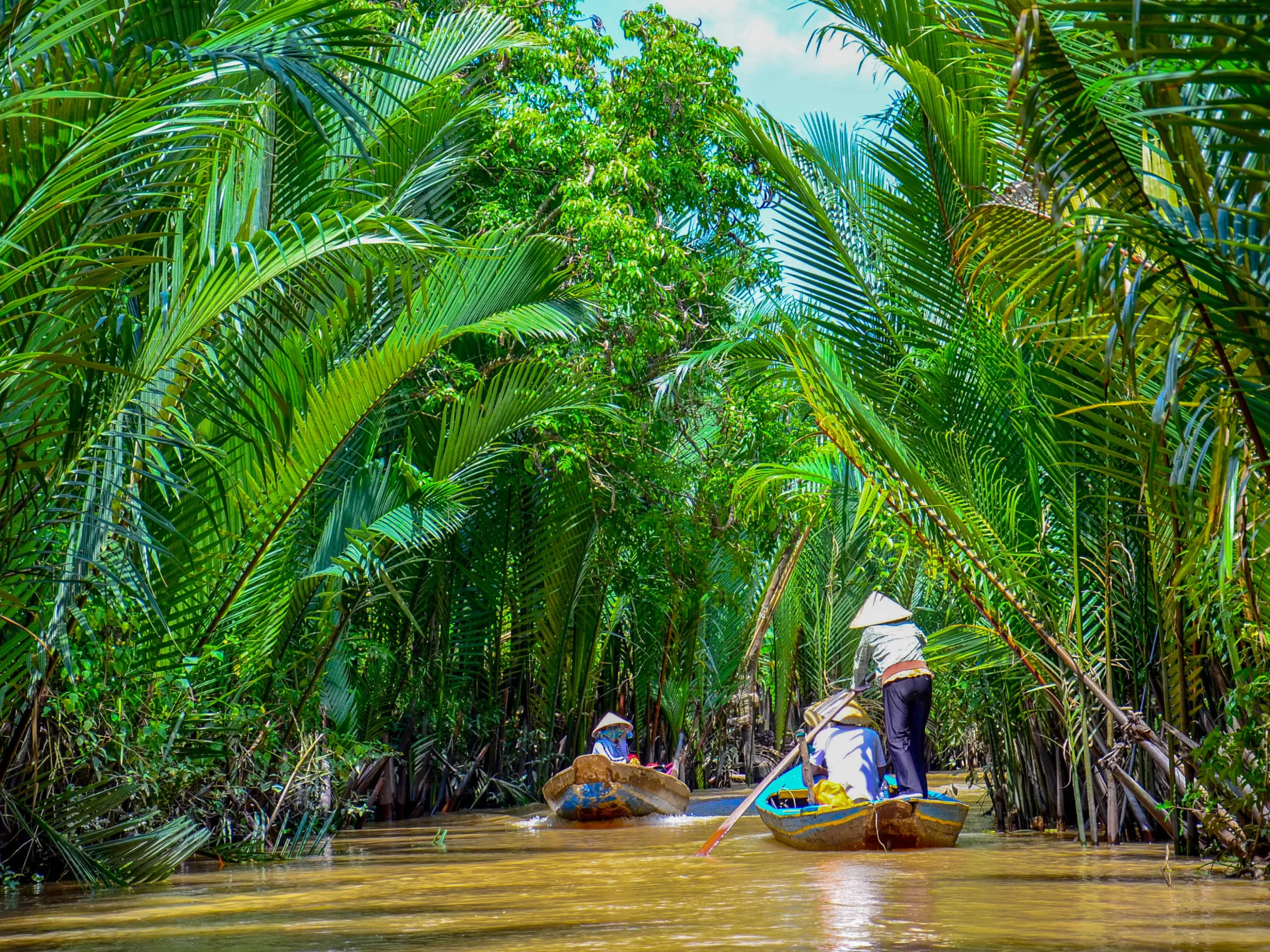 Osaksi veneellä tehtävällä kokopäiväretkellä voit tutustua myös Mekongin suistoalueeseen. Rehevä ja hedelmällinen Mekong-joen suisto on laajuudeltaan noin 40000 m2, josta suurin osa on veden peitossa. Mekong virtaa alkulähteiltään 4500 kilometrin matkan kuuden maan läpi, kunnes se saapuu suistoonsa Ho Chi Minhin kaupungin eteläpuoliselle rannikolle. Veneretkellä vieraillaan myös paikallisten käsityöläisten luona ja pienviljelijöiden tiluksilla, esimerkiksi kookospähkinäplantaasilla.
