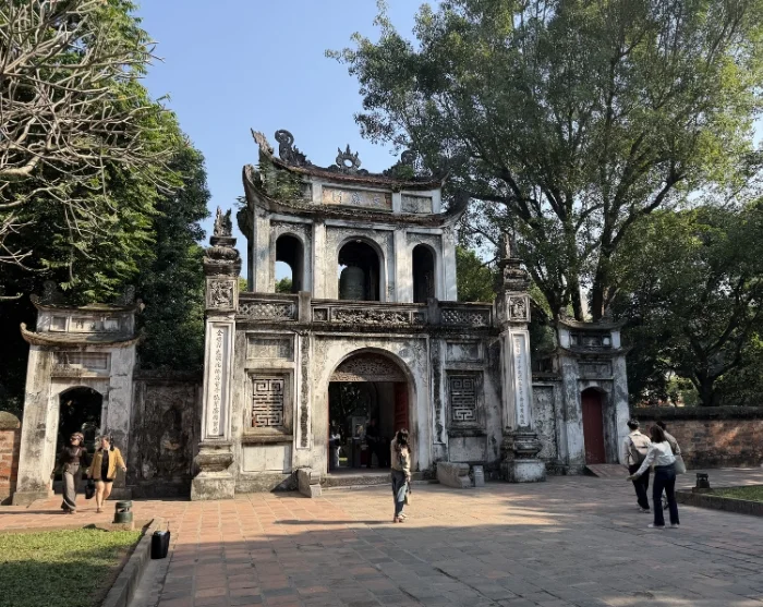 Tämän jälkeen sinut kuljetetaan Kirjallisuuden temppeliin, rauhalliseen 1100-luvulla rakennettuun kompleksiin, jonka perustivat kiinalaisen filosofin Konfutsen oppilaat. Lähes tuhatvuotinen temppeli on harvinainen ja hyvin säilynyt esimerkki perinteisestä vietnamilaisesta arkkitehtuurista. Siellä on pylväskäytäviä, lampia ja vihreitä sisäpihoja, jonne nuoret opiskelijat tulevat yhä tänä päivänä rukoilemaan onnea kokeisiinsa.