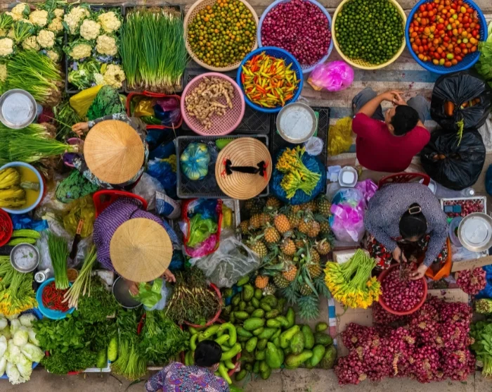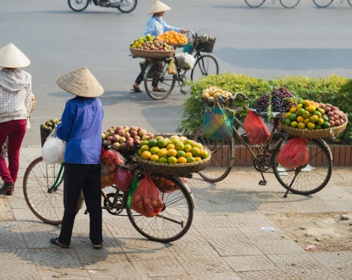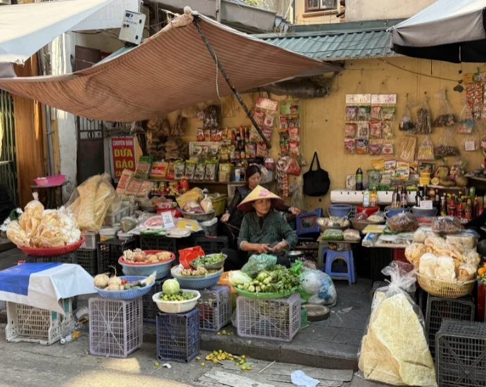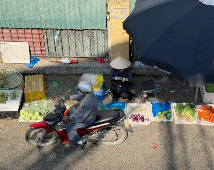 Tämän jälkeen voit suunnata Long Bienin sillan seudulle ja viereiselle torille, jossa hedelmien, vihannesten ja kukkien myyjät valtaavat kadut. Alue tarjoaa aidon ja elävän välähdyksen kaupungin arkeem – täällä vauhti on kova ja tunnelma säilyy autenttisena vuorokaudenajasta riippumatta.