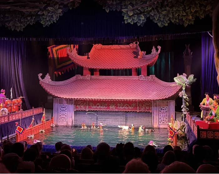 Päivän kaupunkikierros huipentuu perinteiseen vesinukketeatteriesitykseen. Kyseessä on satoja vuosia vanha vietnamilainen perinne, jossa nuket tanssivat veden pinnalla elävän musiikin ja klassisen tarinankerronnan säestyksellä.