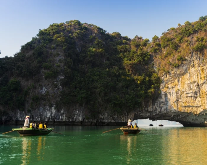 Pääkaupungista matka jatkuu Lan Ha -lahdelle, joka sijaitsee tunnetumman Halonginlahden eteläpuolella. Risteilet jylhien kalkkikivikallioiden ja vehreiden pikkusaarten lomassa, nautit lahden ainutlaatuisesta tunnelmasta auringon laskiessa ja ihailet aamun kajastusta tyynen veden yllä.