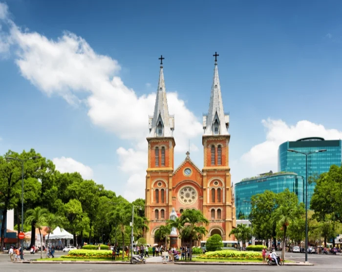 Vanhaa postitaloa vastapäätä sijaitseva ikoninen Notre Damen katedraali puolestaan rakennettiin vuosina 1863–1880. Katedraali on vaikuttava jäänne Ranskan siirtomaa-ajalta, ja sen tunnusomaisia piirteitä ovat punaiset tiilet ja korkeat tornit.