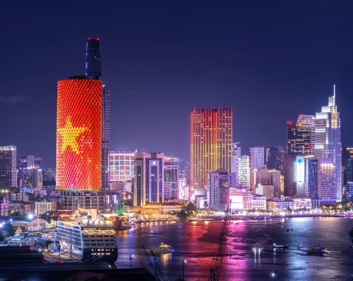 Auringon laskettua kannattaa suunnata yhteen kaupungin pilvenpiirtäjistä, kuten Bitexco Financial Toweriin tai Landmark 81:een, ja ihailla kaupungin valomerta.