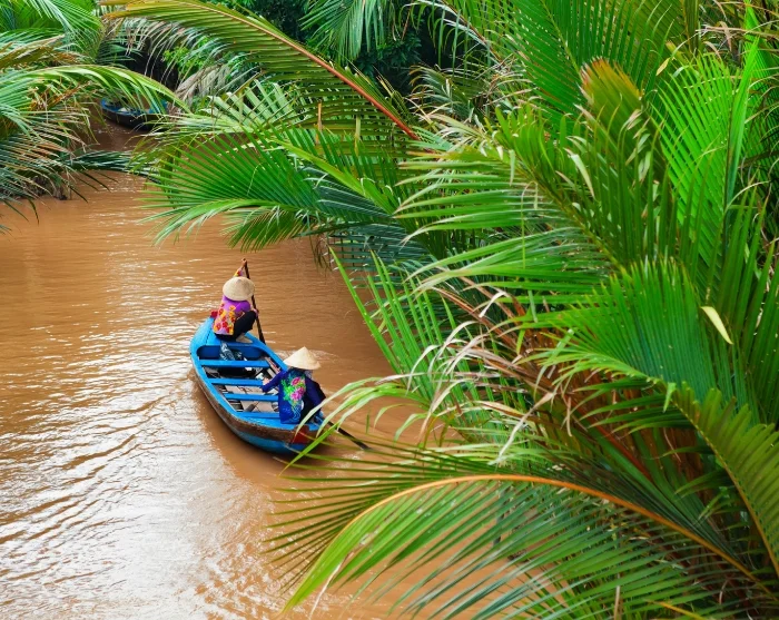 Aamiaisen jälkeen opas ja kuljettaja hakevat sinut hotellilta, ja matka jatkuu kohti vehreää Mekongin suistoa, joka on yksi Vietnamin hedelmällisimmistä ja elinvoimaisimmista alueista. Mekong-joki saa alkunsa Himalajalta ja virtaa noin 4 500 kilometriä kuuden maan läpi ennen kuin se haarautuu laajaksi suistoalueeksi Ho Chi Minhin kaupungin eteläpuolella. Suisto kattaa noin 40 000 neliökilometriä, ja veden määrä alueella vaihtelee sadekauden voimakkuuden ja vuodenaikojen mukaan.