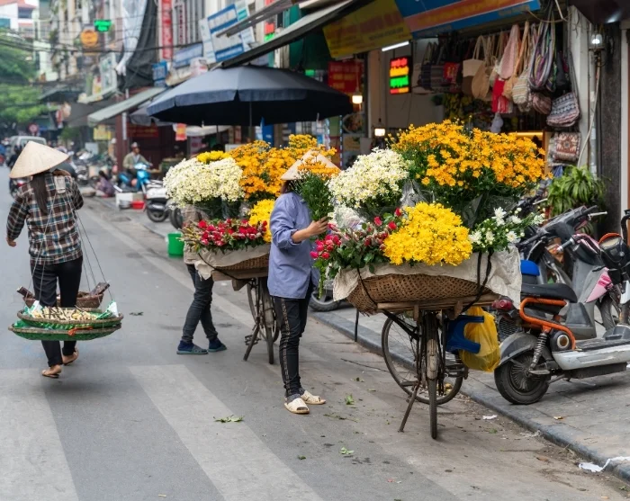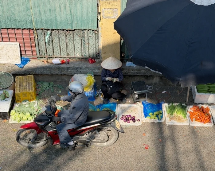 Tämän jälkeen voit suunnata Long Bien -sillan alueelle ja sen läheisille markkinoille, missä hedelmien, vihannesten ja kukkien myynti täyttää kadut ja tarjoaa katsauksen kaupungin arkeen. Täällä tahti on kiireinen ja tunnelma aito, olipa vuorokaudenaika mikä tahansa.
