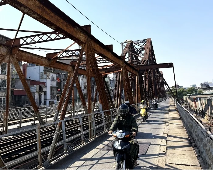Jännittävän cyclo-ajelun jälkeen vierailet historiallisella Long Bienin sillalla. Silta on ikoninen maamerkki Ranskan siirtomaa-ajalta ja se on rakennettu 1900-luvun alussa. Tunnusomainen rautasilta ylittää Punaisenjoen. Se vaurioitui pahoin Vietnamin sodassa, mutta on nykyään vahva symboli Hanoin sitkeydestä ja historiasta. Sillalla saat aidon katsauksen Hanoin arkipäivään: paikalliset ajavat skoottereilla töihin ja töistä, rinta rinnan pyöräilijöiden ja jalankulkijoiden kanssa. Kun katsot alas sillalta, näet vilkkaan Long Bienin torin, jossa on toimintaa varhaisesta aamusta lähtien. Joen rauhallinen näkymä muodostaa kauniin vastapainon kaupungin sykkeelle.