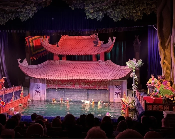 Päivän kierros päättyy vesinukketeatteriesitykseen, joka on satoja vuosia vanha vietnamilainen perinne, jossa nuket tanssivat veden pinnalla elävän musiikin ja perinteisten tarinoiden säestämänä.