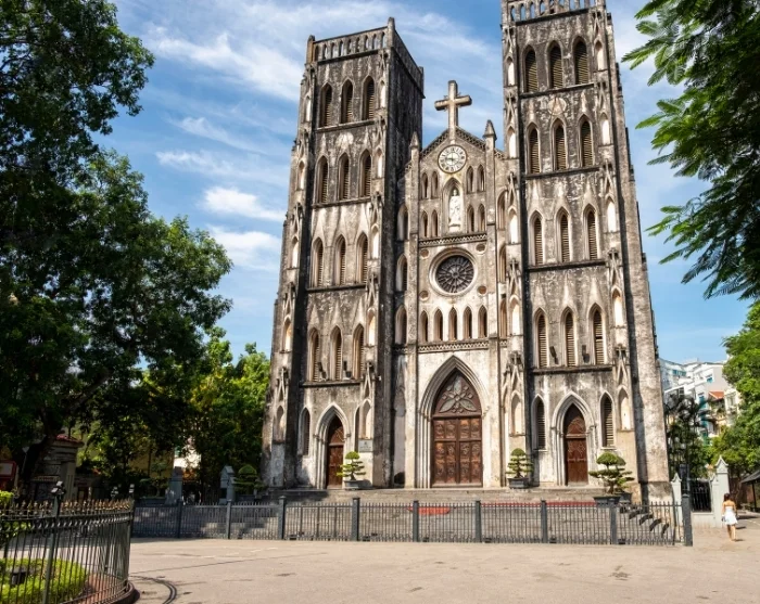 Voit jatkaa matkaa kohti kaunista Hoan Kiem -järveä, jonka ympärillä kapeat kadut ja ranskalaiset siirtomaa-ajan rakennukset kätkevät sisäänsä pieniä liikkeitä, värikkäitä taidegallerioita ja viihtyisiä kahviloita. Istahda alas vietnamilaisen kahvin äärelle ja tarkkaile ohikulkevaa elämää, jossa paikalliset ja matkailijat kohtaavat hetkittäin samoilla kaduilla. Lähettyvillä kohoaa ikoninen Pyhän Joosefin katedraali, jonka goottilaistyylinen julkisivu ja vilkas aukio tekevät siitä suositun kohtaamispaikan.