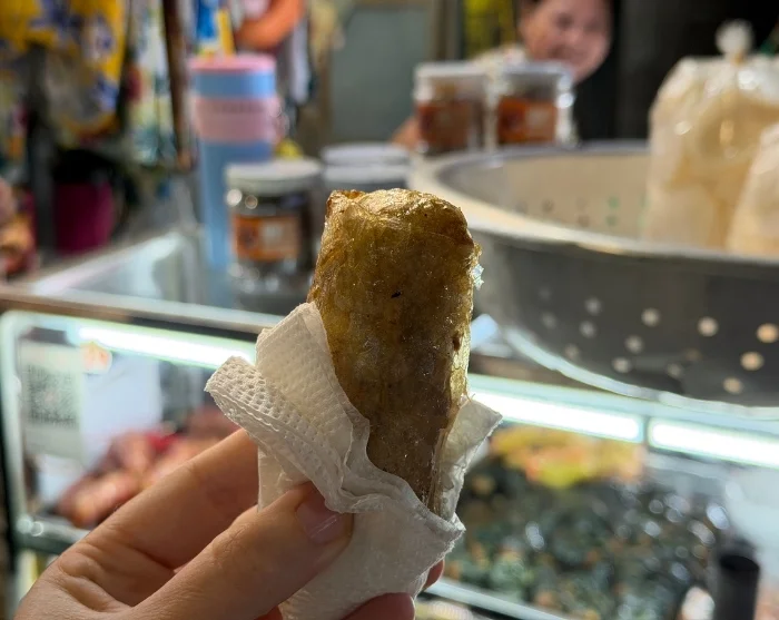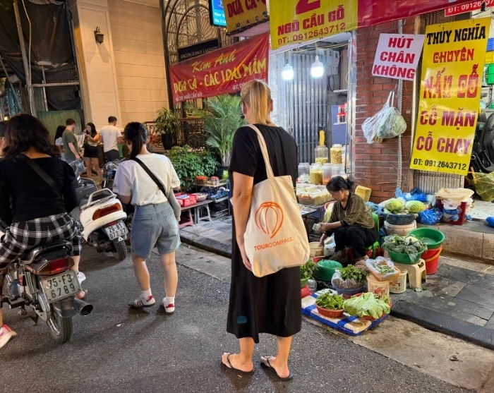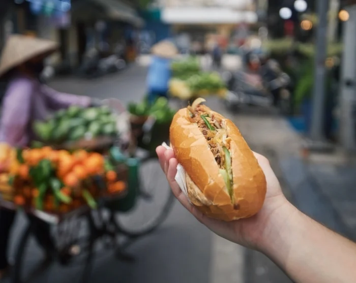 Tästä jatkat matkaa kapeiden kujien halki maistellen paikallisia herkkuja: nem ran (rapeita keväänrullia), maailmankuulua pho- keittoa (nuudelikeittoa), banh ran (makeita paistettuja riisipalloja) sekä mehukkaita, rapeaksi paistettuja kananreisiä. Matkan varrella kuljet Hang Ma Streetin halki ja pääset kurkistamaan paikalliseen kulttuuriin ja arkeen, ennen kuin saavut tunnelmalliseen bambunurkkaan – pieni katu, joka on täynnä bambutuotteita ja vilkasta paikallista elämää. Ruokailuelämys huipentuu klassiseen banh mi (vietnamilaisiin täytettyyn patonkiin) paikallisessa suosikkipaikassa.