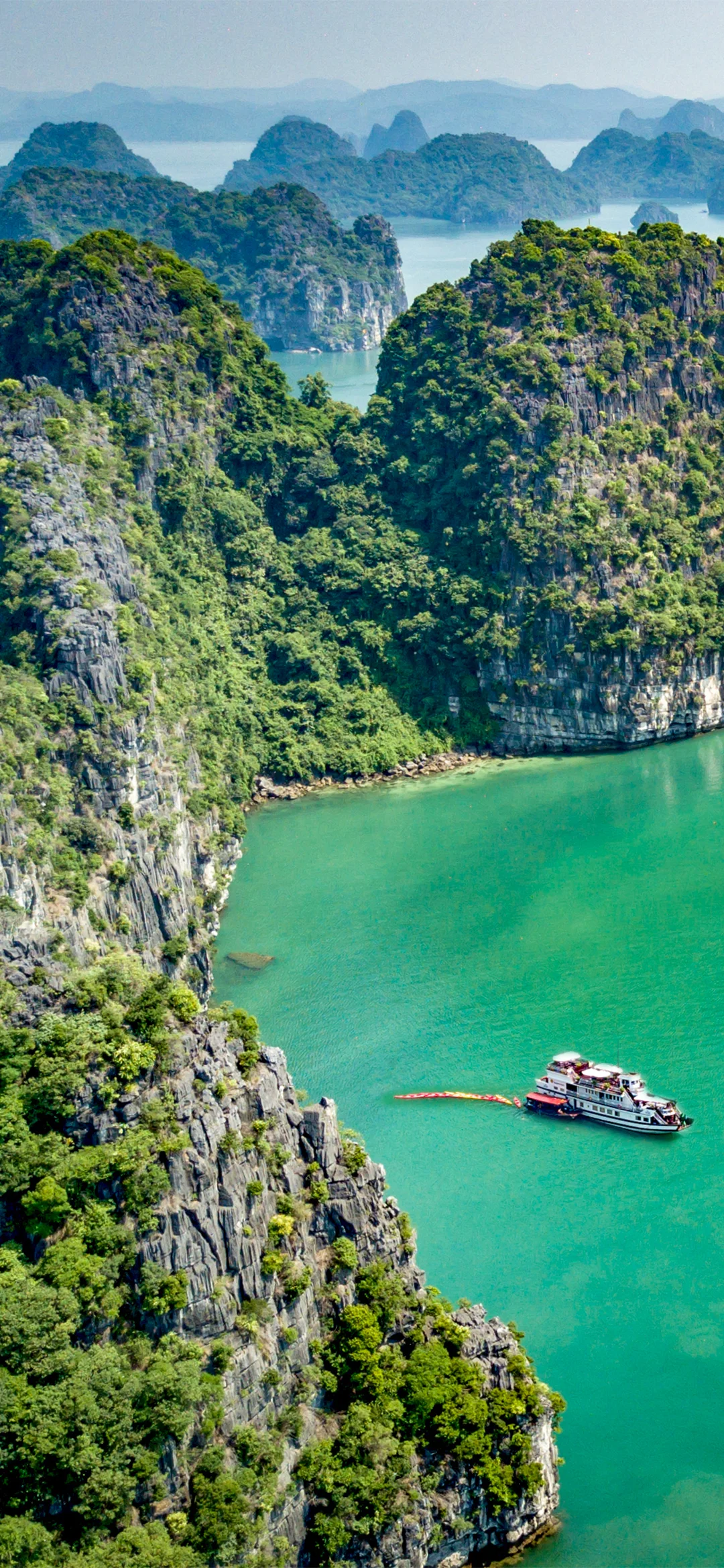 Matka jatkuu vähemmän tunnetulle Bai Tu Longin lahdelle, jossa purjehdit majesteettisten kalkkikivijyrkänteiden ja rauhallisten laguunijen lomassa. Laivalla voit nauttia hiljaisuudesta ja katsella, kuinka aurinko värjää smaragdinvihreän meren.