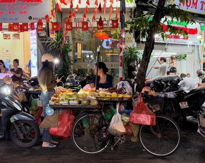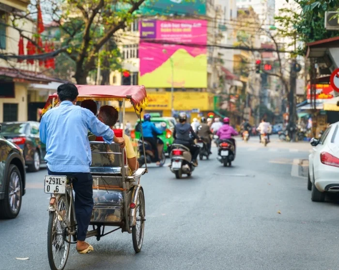 Matka jatkuu perinteisellä polkupyöräriksalla – cyclolla – vanhan kaupungin kapeiden ja vilkkaiden kujien lävitse. Vanhakaupunki tunnetaan 36 kadustaan, jotka alun perin nimettiin siellä myytyjen tavaroiden mukaan: bambu, silkki, paperi ja pelti. Nykyään monet katunimet ovat yhä tallella, ja tunnelma huokuu paikallista viehätystä: kaduilla hanoilaiset edelleen asioivat, jutustelevat ja tarjoilevat höyryävää pho-keittoa katukeittiöistään.