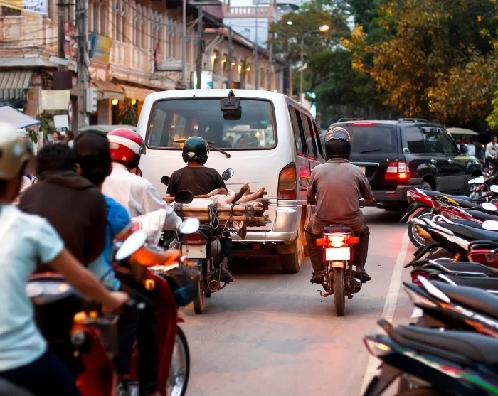 Laskeudut Siem Reapin kansainväliselle lentokentälle, kuljet maahantulotarkistuksen läpi ja noudat matkatavarasi. Oppaasi odottaa tuloaulassa. Tunnistat oppaan helposti, sillä hänellä on yllään TourCompass-univormu ja kädessään TourCompass-kyltti. Jo tässä vaiheessa saat tuntumaa Kambodžan vieraanvaraiseen ja ylpeään kansaan. Sinut kuljetetaan hotelliisi, joka sijaitsee Siem Reapin keskustassa – matka kestää noin puolitoista tuntia.