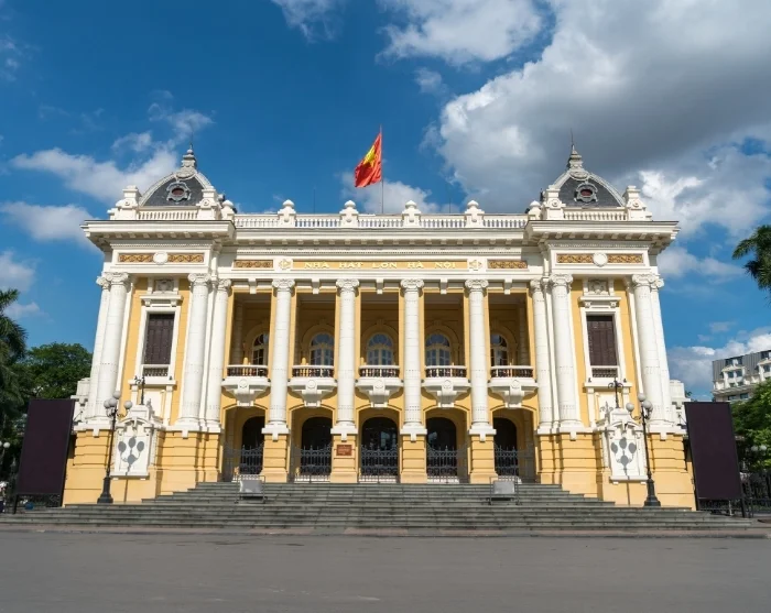 Näet Saigonin oopperatalon, vuonna 1901 rakennetun arkkitehtonisen mestariteoksen, joka symboloi kaupungin kulttuuriperintöä. Ooppera on toiminut niin väestösuojana kuin Etelä-Vietnamin parlamentin alahuoneena, joten sen historia on varsin merkittävä ja mielenkiintoinen.