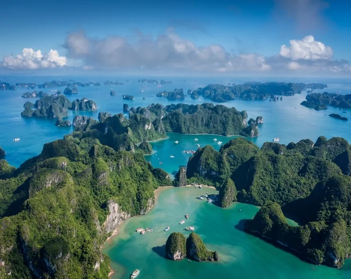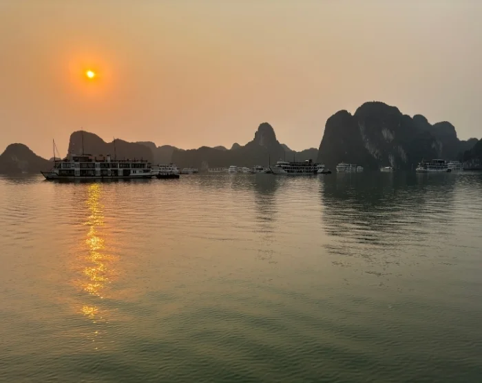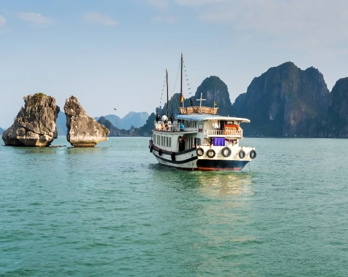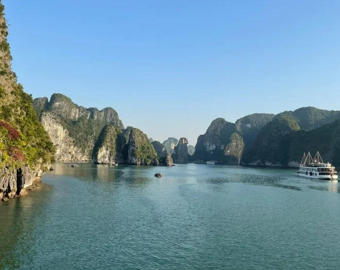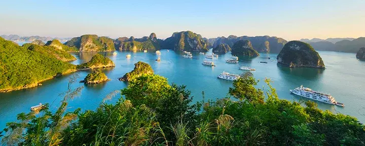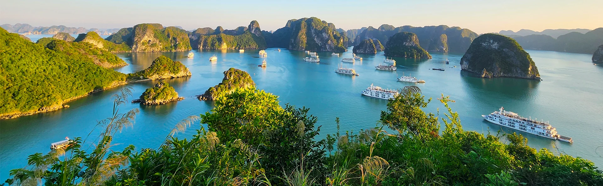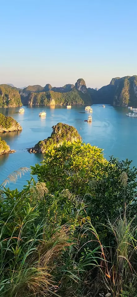 Hanoista matka jatkuu kohti itää Halonginlahdelle, missä on vuorossa miniristeily karstisaarten lomassa. Vierailet Ti Top Islandilla, missä voit uida ja katsella maisemia näköalapaikalta, tutkit isoa tippukiviluolaa, yövyt hytissä ja heräät aamuauringon säteisiin, jotka tanssivat smaragdinvihreän veden pinnalla.