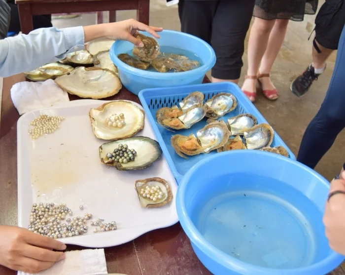 Myöhemmin alus pysähtyy helmenviljelytilalla, jossa voit tutustua perinteiseen helmenviljelyyn. Täällä voit myös hypätä kajakkiin ja lähteä leppoisalle melontaretkelle luonnonkauniisiin maisemiin.