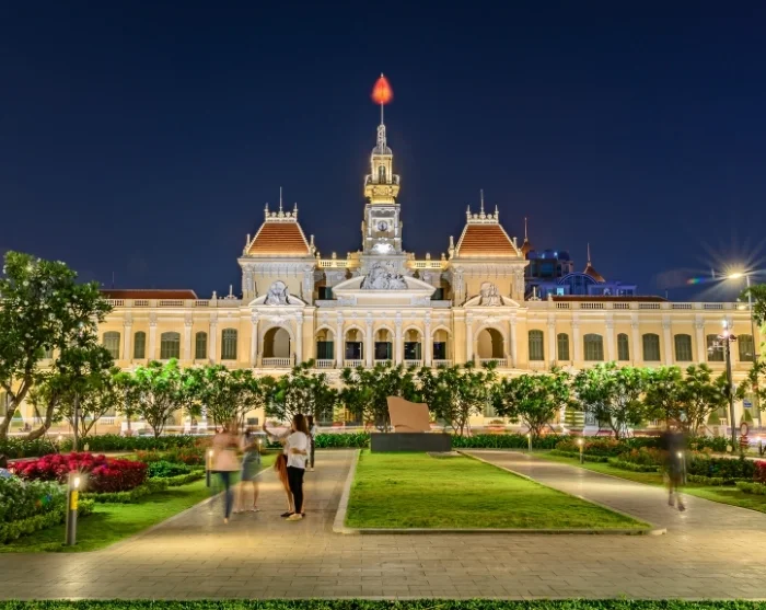 Hämärän laskeutuessa voit lähteä kävelylle Nguyen Hue -kävelykadulle, jota reunustavat kukat, suihkulähteet ja tunnelmallinen arkkitehtuuri. Uppoudu kaupunkielämään ja nauti paikallisten asukkaiden, katutaiteilijoiden, tanssijoiden ja lapsiperheiden hurmaavasta sekamelskasta. Rento ja eloisa ilmapiiri on parhaimmillaan valaistun kaupungintalon ympärillä.