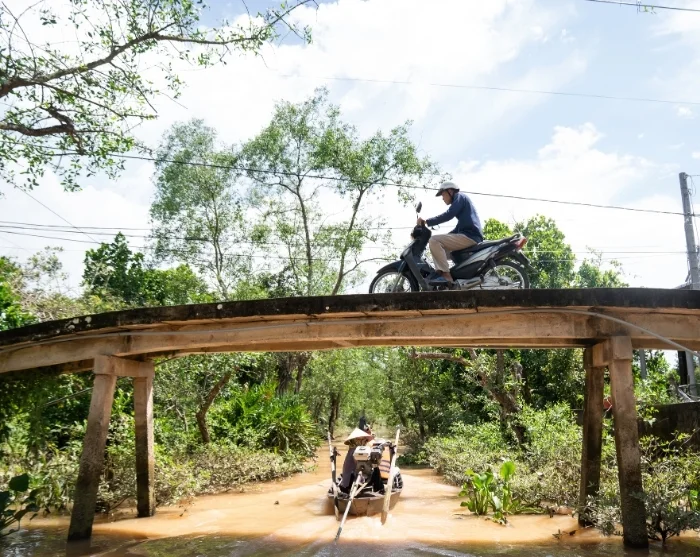 Matkan viimeinen osuus vie sinut Mekongin suistoon, jossa yövyt ja purjehdit pienillä kanavilla vesikookospalmujen katveessa. Vierailun aikana pääset tutustumaan Vinh Longissa sijaitsevaan kestävän kehityksen ja yhteisöllisen kasvun hankkeeseemme, jonka on käynnistänyt paikallinen yhteistyökumppanimme. Samalla tuet tätä tärkeää työtä, sillä osa matkan hinnasta ohjataan suoraan hankkeen toimintaan.