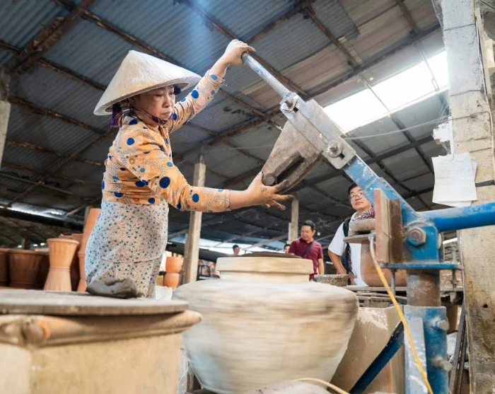 Tänään pääset kurkistamaan arkeen ja käsityöperinteisiin Tra Vinhin pienissä kyläyhteisöissä. Tra Vinh on rauhallinen provinssi Mekongin suiston eteläosassa, jonka tunnuspiirteenä on suuri khmer-väestö. Värikkäät pagodit, verkkaisa elämänrytmi ja hengellinen ilmapiiri antavat kaupungille ainutlaatuisen luonteen ja luovat tunnelman päivän elämyksille.