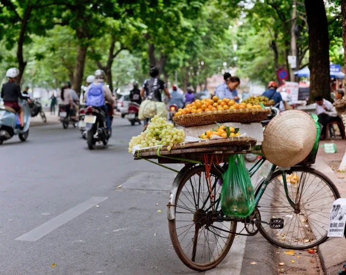 Aterian jälkeen nouset perinteisen pyörätaksin eli cyclon kyytiin, joka vie sinut vanhan kaupunginosan kapeiden katujen ja vilkkaiden kauppojen labyrinttiin. Vanha kaupunki tunnetaan 36 kadustaan, joiden nimet ovat peräisin täällä myydyistä tuotteista, kuten bambusta, silkistä, paperista ja pellistä. Monet kadunnimistä ovat käytössä vielä tänäkin päivänä, ja tunnelma huokuu paikallista charmia. Hanoilaiset tulevat tänne edelleen käymään kauppaa, jutustelemaan ja herkuttelemaan katukeittiöiden höyryävällä pho-keitolla.