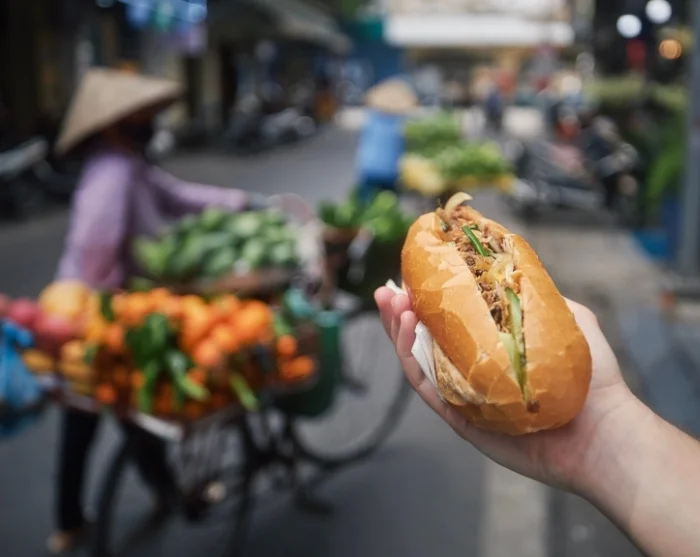 Lounasaikaan voit etsiä kivan ruokapaikan Hanoin monien streetfood-kojujen joukosta. Tilaa höyryävä pho-kulhollinen, nuuski grillatun bun chan tuoksuja tai nappaa evääksi rapea banh mi.