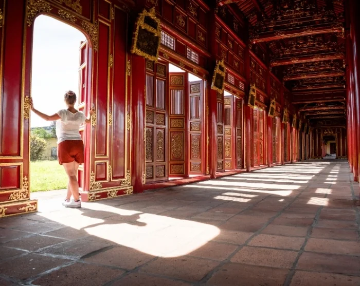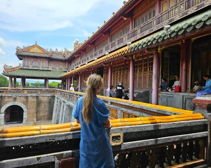 Opas noutaa sinut hotellilta. Ensimmäinen pysähdyspaikka on vanha keisarillinen kaupunki, vaikuttava linnoitus, joka rakennettiin 1800-luvun alussa Nguyen-dynastian tehtyä Huésta pääkaupungin. Linnoitus on ympäröity vallihaudoilla ja massiivisilla muureilla, ja se sisältää sekä hallintorakennuksia että keisarillisen perheen entiset huoneistot. Alue on saanut inspiraationsa Pekingin Kielletystä kaupungista, ja Indokiinan ja Vietnamin sodan aiheuttamista tuhoista huolimatta osa palatsista ja pyhistä saleista on säilyttänyt entisen loistonsa. UNESCO on käynnistänyt laajat restaurointihankkeet, jotka tuovat uutta elämää historialliseen kompleksiin.