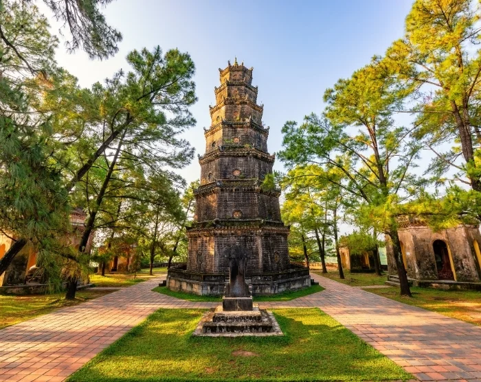 Seuraava vierailukohde on Thien Mu -pagodi, joka on Huén vanhin ja tunnetuin uskonnollinen maamerkki. Pagodi sijaitsee korkealla paikalla, josta avautuu näköala Parfyymijoelle. Se on toiminut jo yli 400 vuoden ajan tärkeänä buddhalaisuuden keskuksena Keski-Vietnamissa. Kahdeksankulmainen pagoditorni kohoaa majesteettisesti taivasta kohti ja muodostaa rauhaisan taustan temppelille ja munkkiyhteisölle, joka edelleen asuu ja harjoittaa uskontoaan täällä.